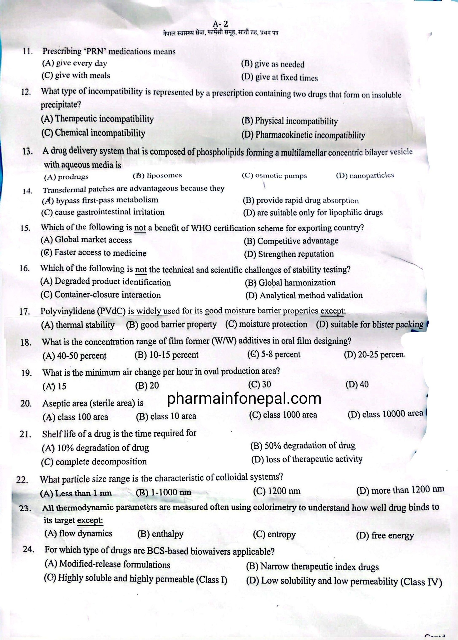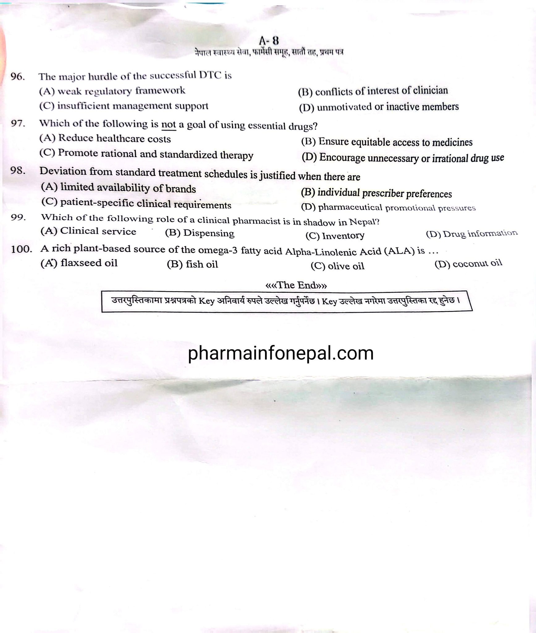 Tags: Pharmacy OfficerPharmacy Officer Loksewa Question PaperQuestions