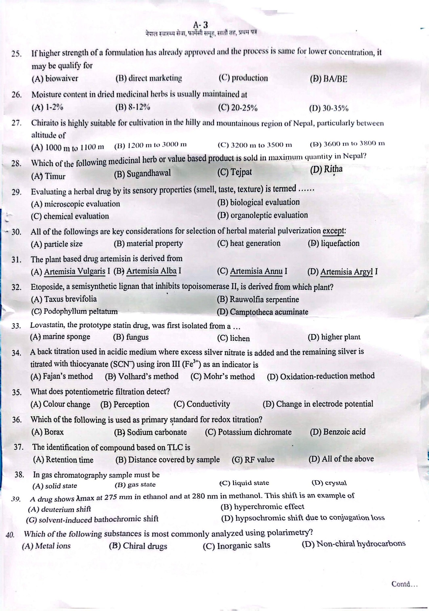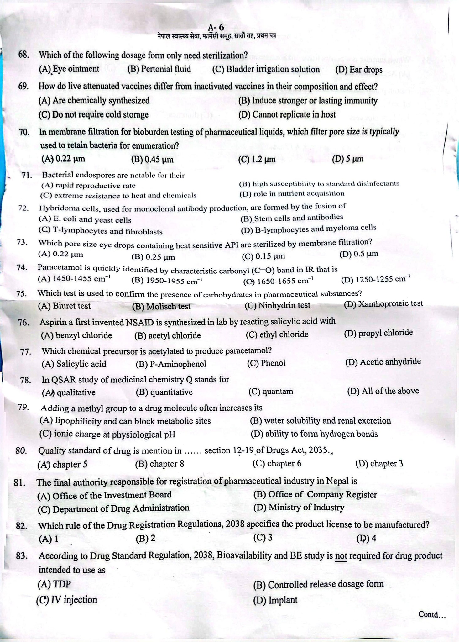 This question paper serves as a valuable resource for aspirants preparing for Loksewa examinations, helping them understand the exam pattern, question trends, and difficulty level. Practicing such papers enhances conceptual clarity, time management, and exam readiness, making it an essential tool for pharmacy graduates aiming for government service positions.